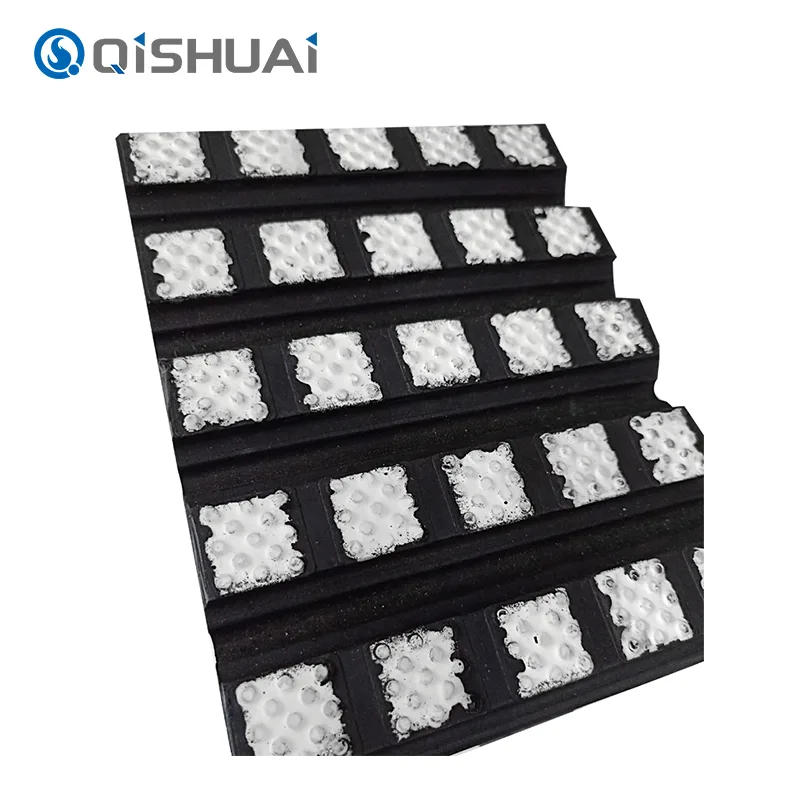 Slydimas yra varginantis dalykas transportuojant medžiagą. Tai ne tik sumažina perdavimo efektyvumą, bet ir gali sukelti medžiagų kaupimąsi, įrangos gedimą ir daugybę kitų problemų. Mūsų gaminys iš Shandong Qishuai Wear-Resistant Equipment Co., Ltd. puikiai išsprendžia šią problemą dėl savo unikalaus paviršiaus dizaino. Keraminės dalelės yra atsitiktinai ant paviršiaus, o yra daugybė mažų dalelių, kurios padidina trintį su medžiagomis.