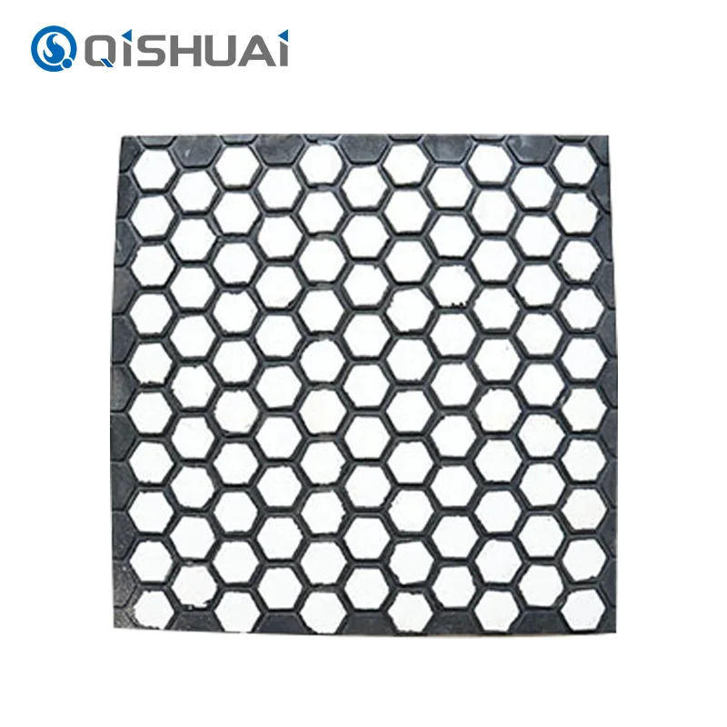 Konstrukcijos gamybos procese keramikos paviršius apdorojamas, keičiantis paviršių. Šis apdorojimas padidina paviršiaus savybes ir paviršiaus gebėjimą formuoti ryšius su sluoksniu. Tada parenkami aukštos kokybės klijai, pasižymintys puikiomis sukibimo savybėmis ir atsparumu senėjimui, kad būtų sukurtas stiprus keramikos ir gumos sujungimas. Esant tam tikroms temperatūros ir slėgio sąlygoms, tokie procesai kaip vulkanizavimas visiškai sujungia klijus tiek su keramika, tiek su guma. Tai sukuria cheminį sukibimą ir fizinį sukibimą, todėl keraminės plytelės ir gumos sluoksniai yra tvirtai sujungti. Tai užtikrina bendrą Composite Wear keraminės gumos plokštės veikimą ir patikimumą. Net ir esant stipriam smūgiui ir vibracijai, keraminės plytelės ir gumos sluoksniai išlieka tvirtai suklijuoti, kartu užtikrindami atsparumą dilimui ir smūgiams.