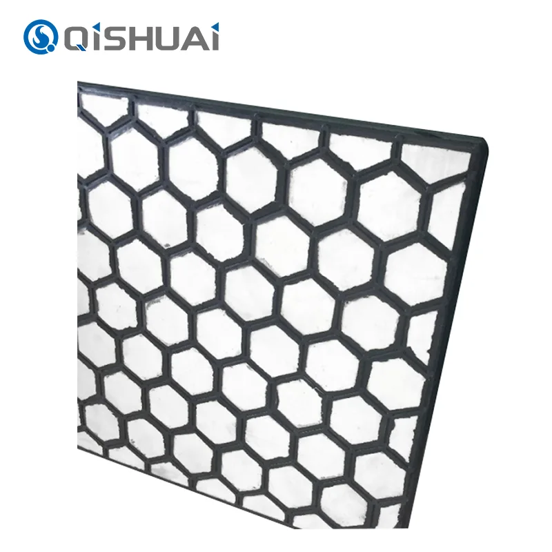 Shandong Qishuai Wear-Resistant Equipment Co., Ltd. gamina medžiagą naudodama keraminį sluoksnį, kuriame yra daug aliuminio oksido keramikos. Aliuminio oksido kiekis šiame sluoksnyje paprastai siekia 95% ar daugiau, o struktūroje matyti smulkūs ir tankūs grūdeliai. Ši struktūra prisideda prie keramikos sluoksnio kietumo.