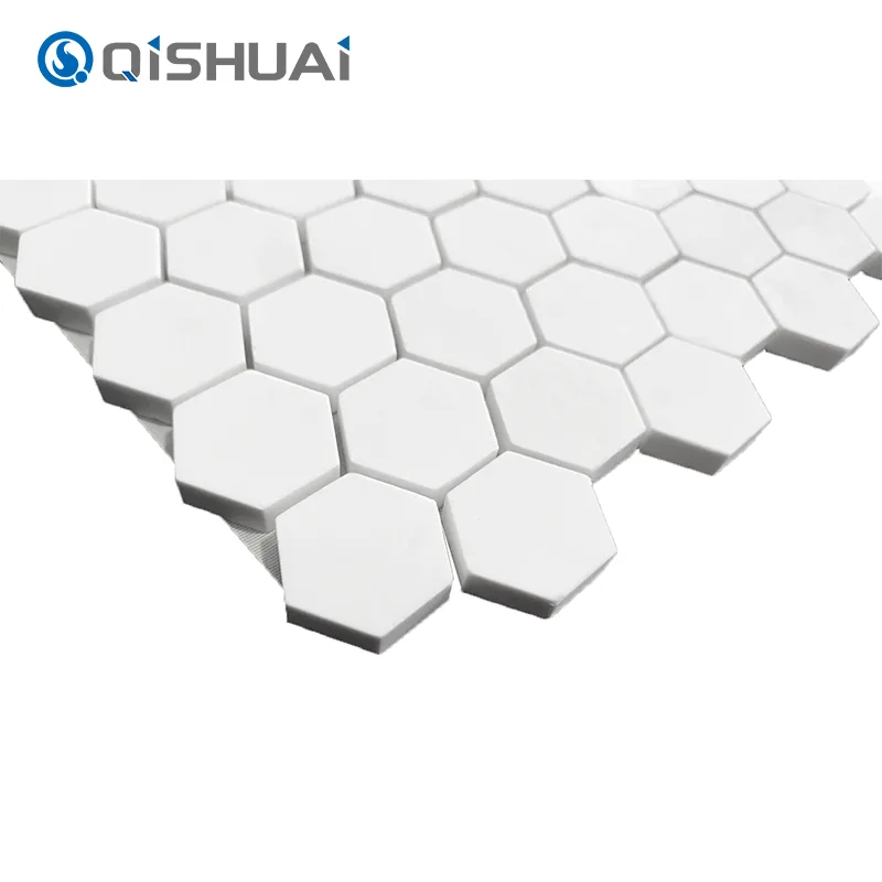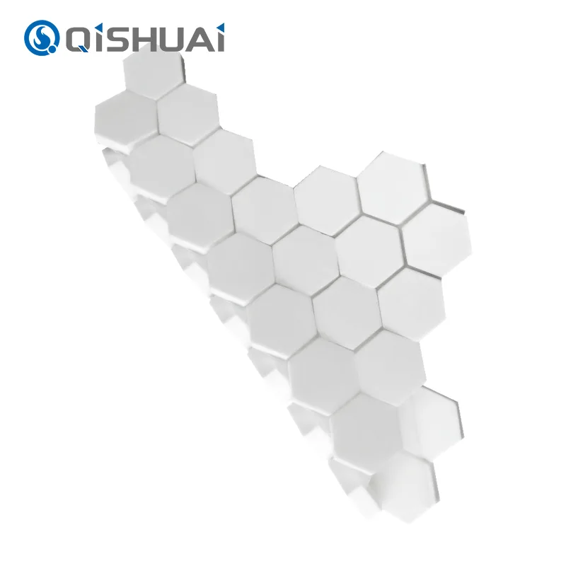 „Shandong Qishuai Wear Resistant Equipment Co., Ltd.“ aukštos kokybės šešiakampio aliuminio oksido keramikos mozaika, kaip parodyta paveikslėlyje, pasižymi išskirtiniu šešiakampiu dizainu, išskiriančiu juos nuo įprastų kvadratinių ar apskritų plytelių. Kiekviena šešiakampė aliuminio oksido keraminė mozaikinė plytelė pasižymi lygiais, tekančiomis briaunomis su aiškiai matomomis išskirtinėmis detalėmis.