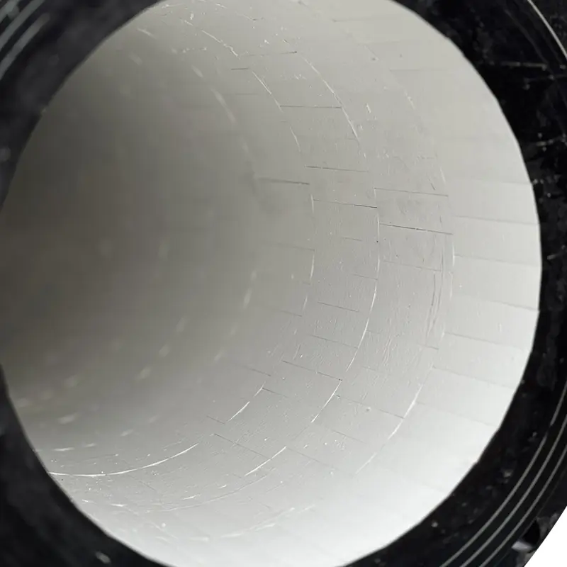 3. Lygus vidinis paviršius energijos taupymui: Keraminis pamušalas turi lygų paviršių (Ra ≤ 0,8 μm) su mažu trinties koeficientu, sumažina medžiagos perdavimo pasipriešinimą ir sumažina siurblio energijos sąnaudas. Lauko bandymai rodo, kad sutaupoma 8–15 % energijos. Be to, jis sumažina medžiagų kaupimąsi ir užsikimšimus, sumažina priežiūros išlaidas;