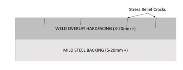 • Dėvėjimui atsparus sluoksnis, pritaikomas pagal poreikį: nuo didelio chromo ketaus iki kelių komponentų lydinių – kietumo diapazoną (HRC 50-62+) ir lydinio sudėtį galima reguliuoti pagal jūsų susidėvėjimo tipą.