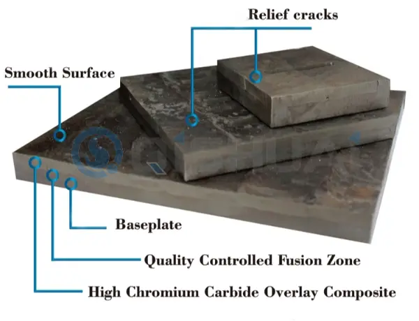 | Stiprus medžiagos šveitimas ir greitas susidėvėjimas | 1. Dėvėjimui atsparaus sluoksnio kietumas (HRC)2. Karbido tipas ir paskirstymas | 1. Didelio kietumo lydinio sluoksnis (HRC 60+)2. Tanki ir vienoda dilimui atspari struktūra | Pjovimas, suvirinimas, tvirtinimas varžtais |