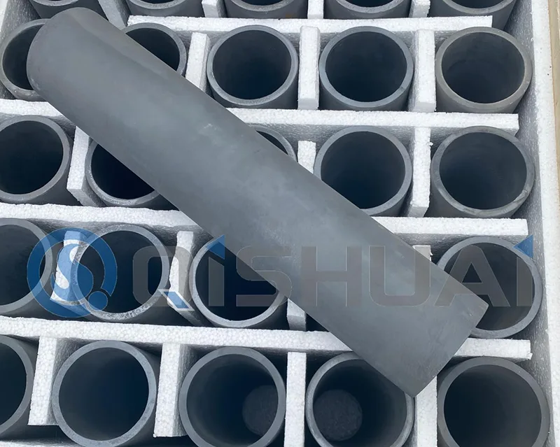 Silicio karbido vamzdžiai: Cilindriniai vamzdžiai, naudojami skysčiams transportuoti aukštos temperatūros krosnyse.